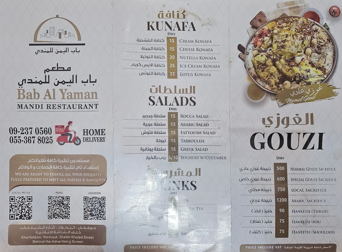 Introducing the Menu at Bab Al Yaman Mandi Restaurant